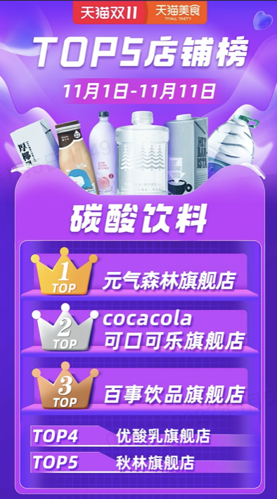 元氣森林第三次拿下天貓雙11冠軍