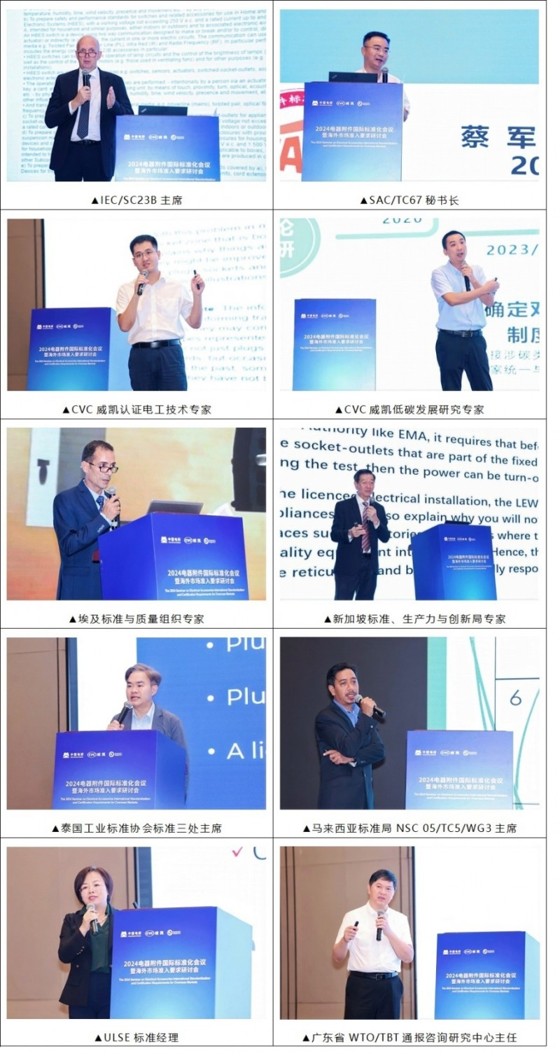 研討會(huì)邀請(qǐng)到全國電器附件標(biāo)委會(huì)、CVC威凱電工和綠色低碳技術(shù)專家、IEC/SC 23B主席、IEC/TC 72秘書、ULSE TC 498主席、埃及標(biāo)準(zhǔn)與質(zhì)量組織電氣實(shí)驗(yàn)室專家、新加坡標(biāo)準(zhǔn)生產(chǎn)力與創(chuàng)新局專家、UL Solutions 首席工程師、泰國工業(yè)化標(biāo)準(zhǔn)協(xié)會(huì)標(biāo)準(zhǔn)三處主席、馬來西亞標(biāo)準(zhǔn)局NSC 05/TC 5/WG 3主席、ULSE代表等方面出席會(huì)議并圍繞電器附件國際標(biāo)準(zhǔn)化趨勢,海外市場的準(zhǔn)入要求以及技術(shù)創(chuàng)新等議題進(jìn)行分享。