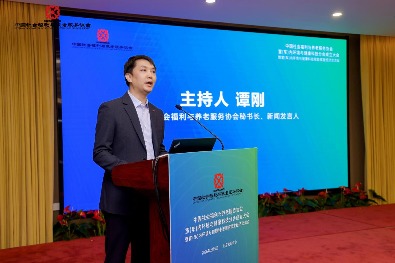 2月5日上午,中國社會福利與養老服務協會室(車)內環境與健康科技分會成立大會暨室(車)內環境與健康科技賦能銀發經濟交流會在北京會議中心召開。本次大會匯聚行業專家、企業代表及養老機構負責人,以“科技賦能健康,守護銀齡生活”為核心,搭建行業交流合作平臺,推動室(車)內環境與健康科技產業同銀發經濟深度融合。