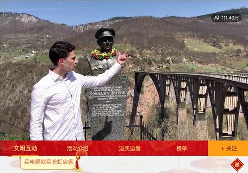 黑山,塔拉河峽谷大橋前,一場穿越國境的直播正在進行中。在主持人的指引下,直播觀眾們“云游”了這座全長366米,在二戰(zhàn)期間被炸毀,后于1946年重新建筑并保留至今的“世界遺產(chǎn)”。