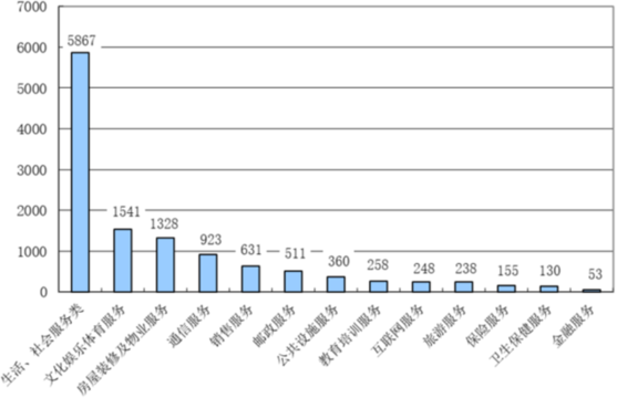 按服務種類來分,涉及生活、社會服務、文化娛樂體育服務、房屋裝修及物業服務的消費者投訴居前三位(見圖3)。