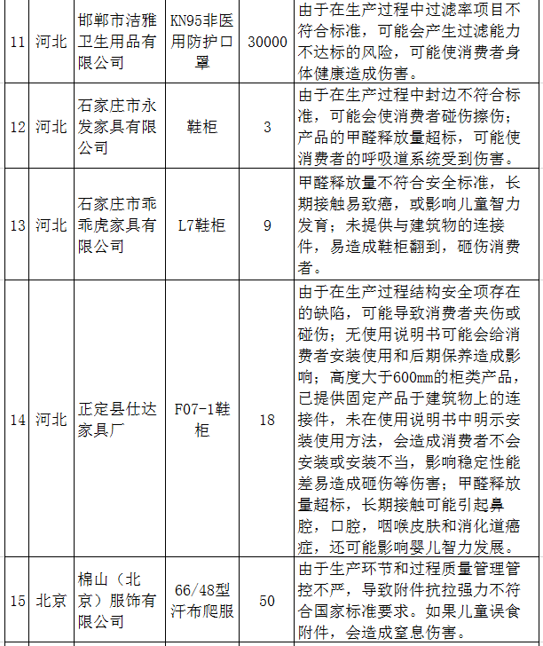此外,河北、廣東、四川等地區召回次數較多,涉及鞋柜、文具筆、電暖氣、加熱器、取暖爐等產品,消費者需重點關注。