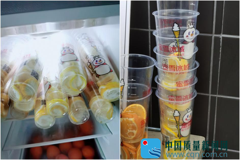 中國質量新聞網調查發現,在蜜雪冰城濟南大觀園店、武漢馬湖商業街店存在使用過夜冰淇淋奶漿、切片檸檬、奶茶的現象。