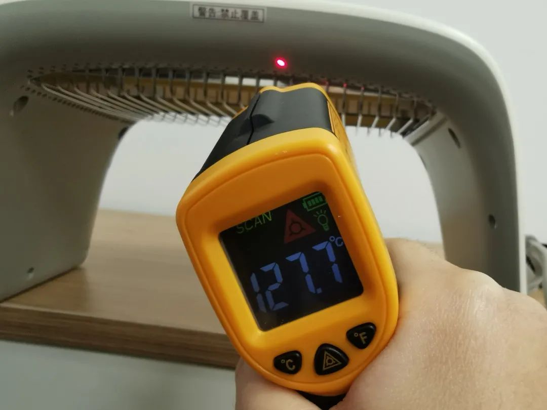 但有1款產品的頂部面板居然達到了127℃!一不小心踢到著實燙腳!盡管這款產品有防傾倒斷電保護,但是起身走動的時候還是小心為好。