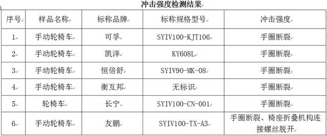 6輛輪椅車未通過沖擊強度試驗