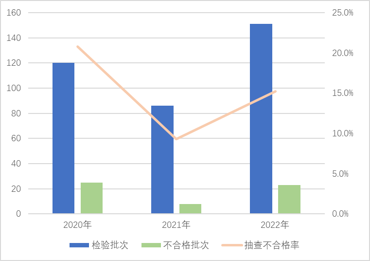 以上抽查主要涉及產業聚集區浙江省、江蘇省企業生產的產品,分別抽查檢驗22批次、14批次,抽查不合格率分別為9.1%、0%。