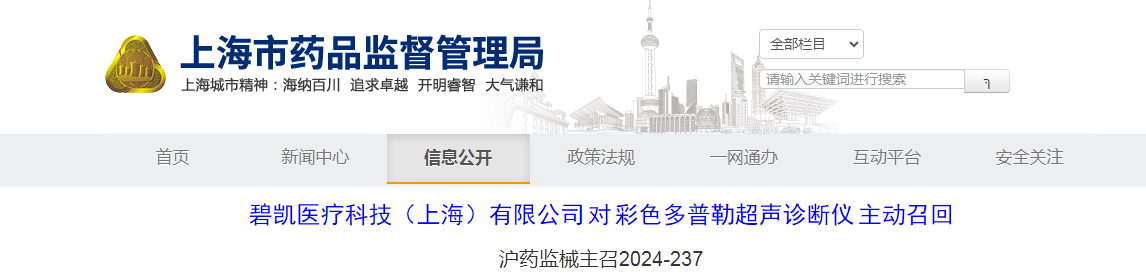 碧凱醫療科技(上海)有限公司報告,由于涉及產品的電源入口處的內部電源連接可能會松動。如果這種情況沒有被注意到,有可能產生過多熱量,從而導致熱事件或設備無法運行。碧凱醫療科技(上海)有限公司對其代理的彩色多普勒超聲診斷儀(注冊證號:國械注進20203060196)主動召回。召回級別為三級。涉及產品的型號、規格及批次等詳細信息見《醫療器械召回事件報告表》。