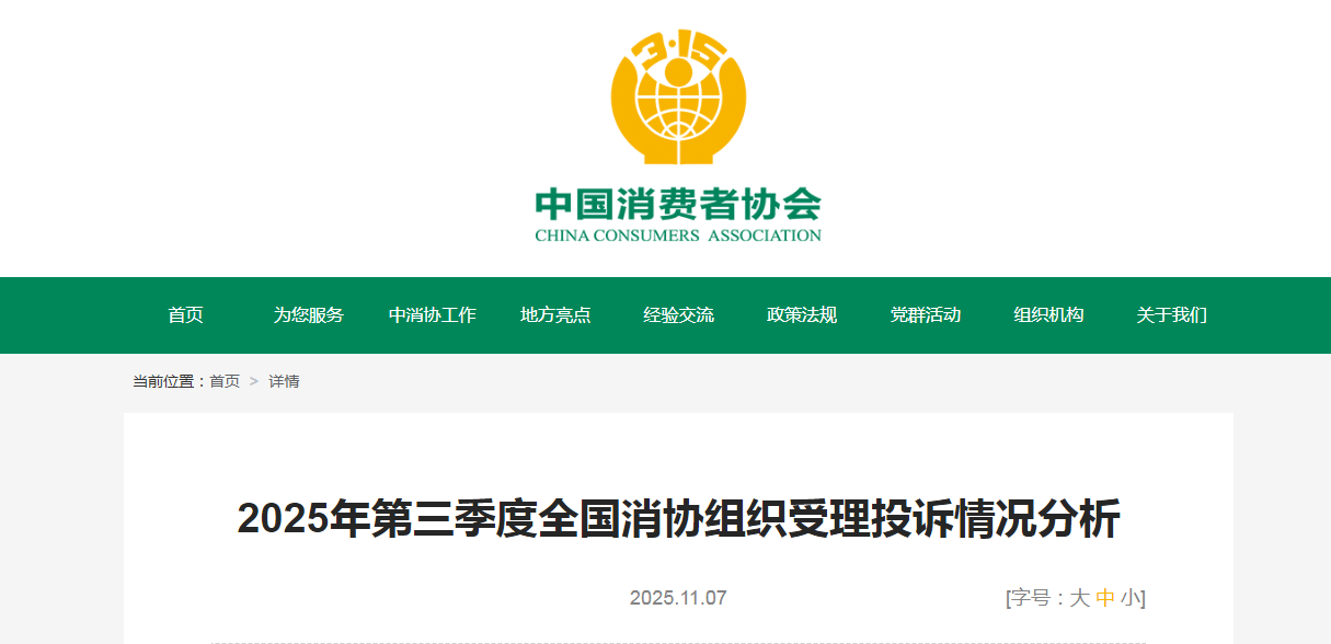 2025年第三季度全國消協(xié)組織受理投訴情況分析