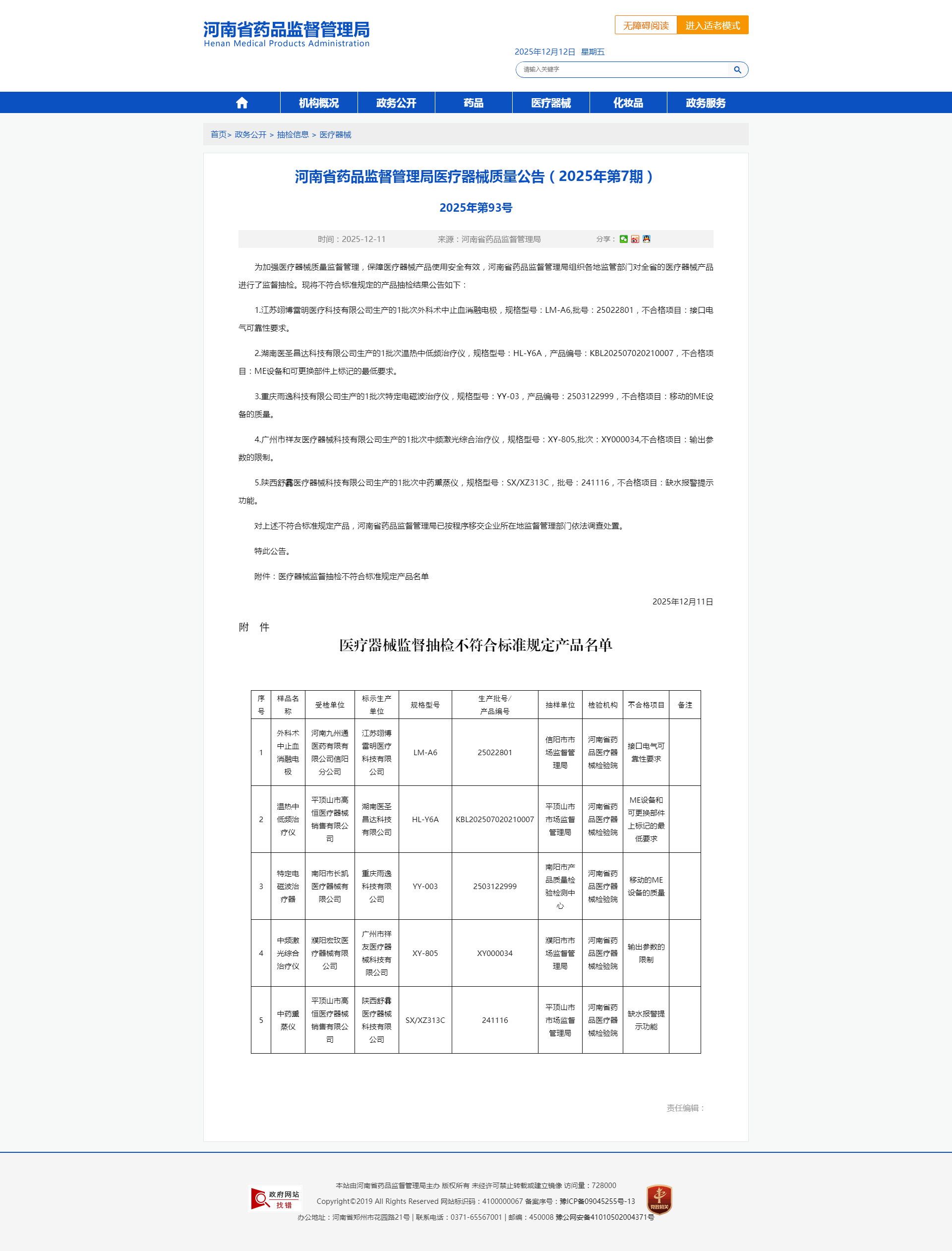 河南省藥品監督管理局醫療器械質量公告(2025年第7期).png