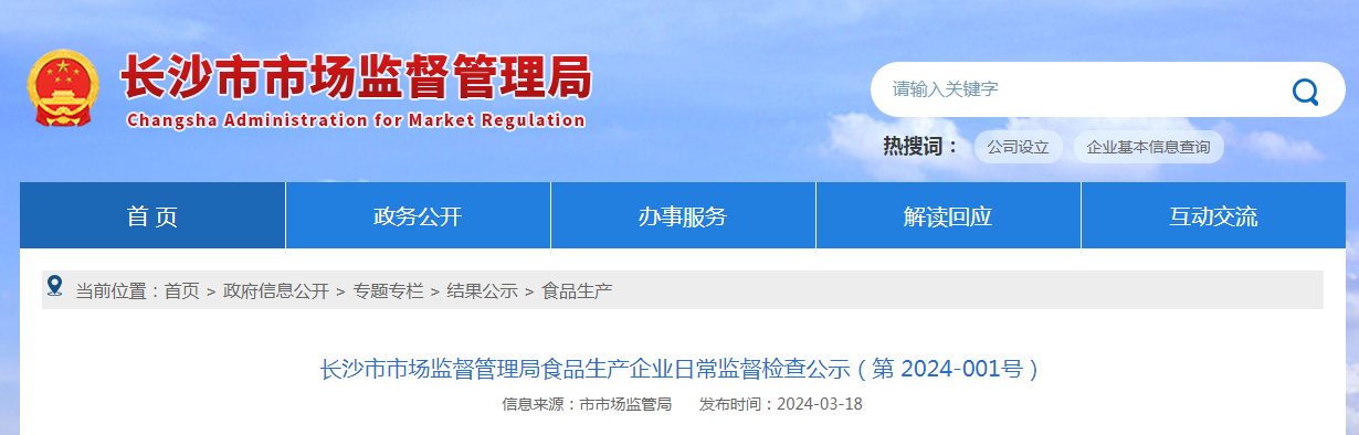 長沙市市場監督管理局食品生產企業日常監督檢查情況表(第2024-001號)