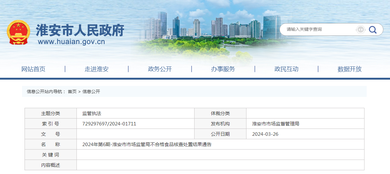 2024年第6期-淮安市市場監(jiān)管局不合格食品核查處置結(jié)果通告