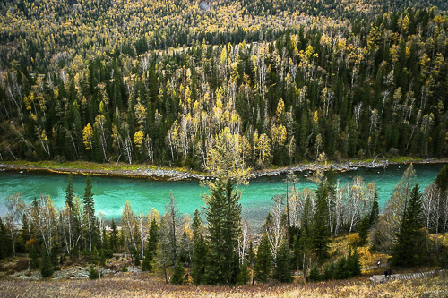 沿喀納斯河徒步,依次可見著名的喀納斯三灣:神仙灣、月亮灣和臥龍灣??{斯河灣,美的令人窒息。