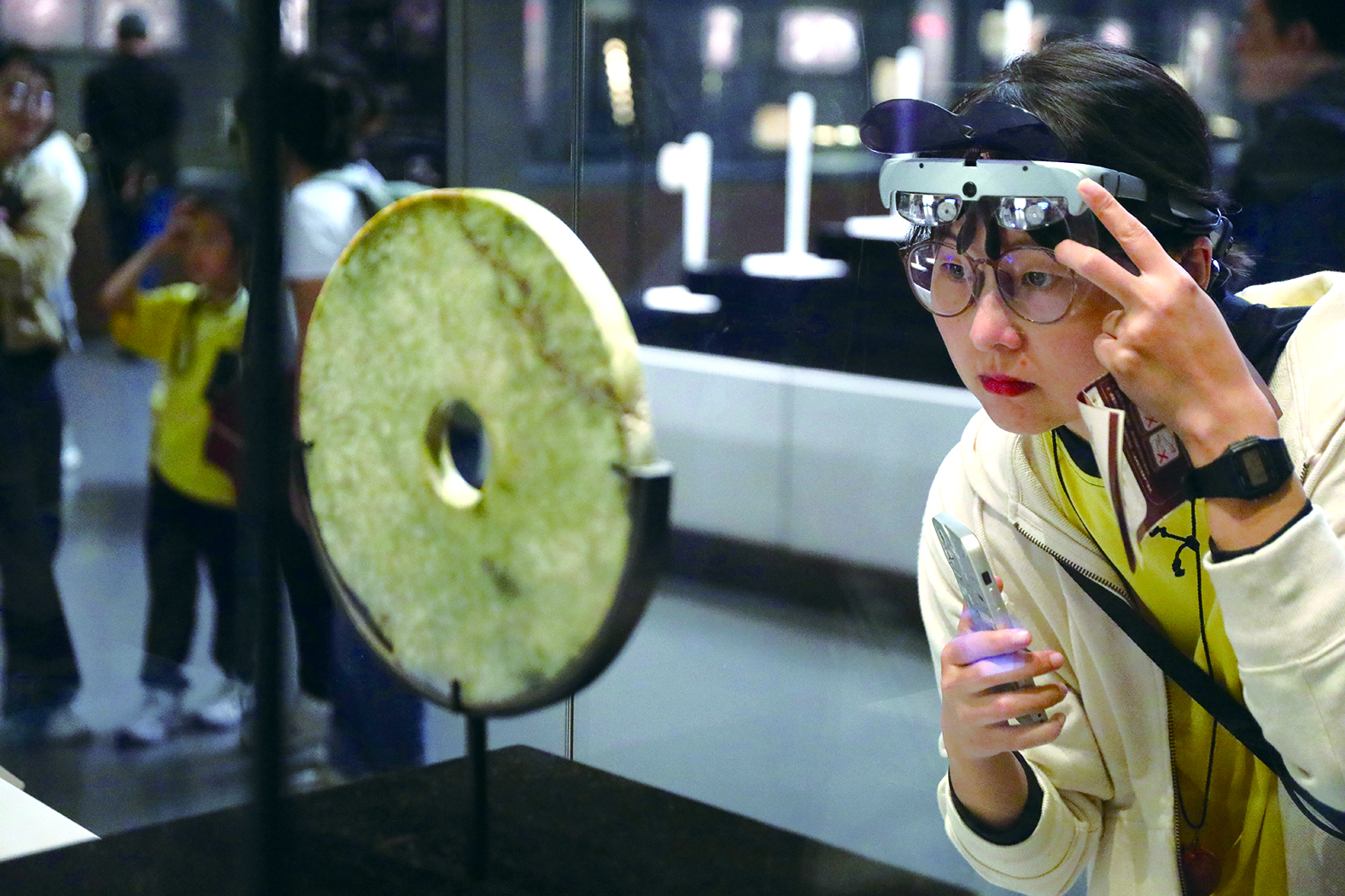 ▲ 圖為游人在位于浙江省杭州市余杭區的良渚博物院觀賞展品。