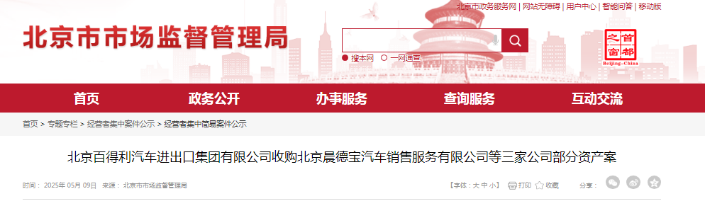 北京百得利汽車進出口集團有限公司收購北京晨德寶汽車銷售服務有限公司等三家公司部分資產案
