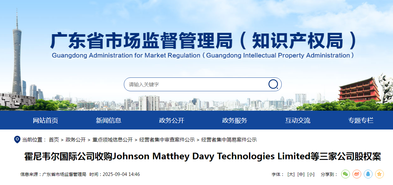 霍尼韋爾國際公司收購Johnson Matthey Davy Technologies Limited等三家公司股權案