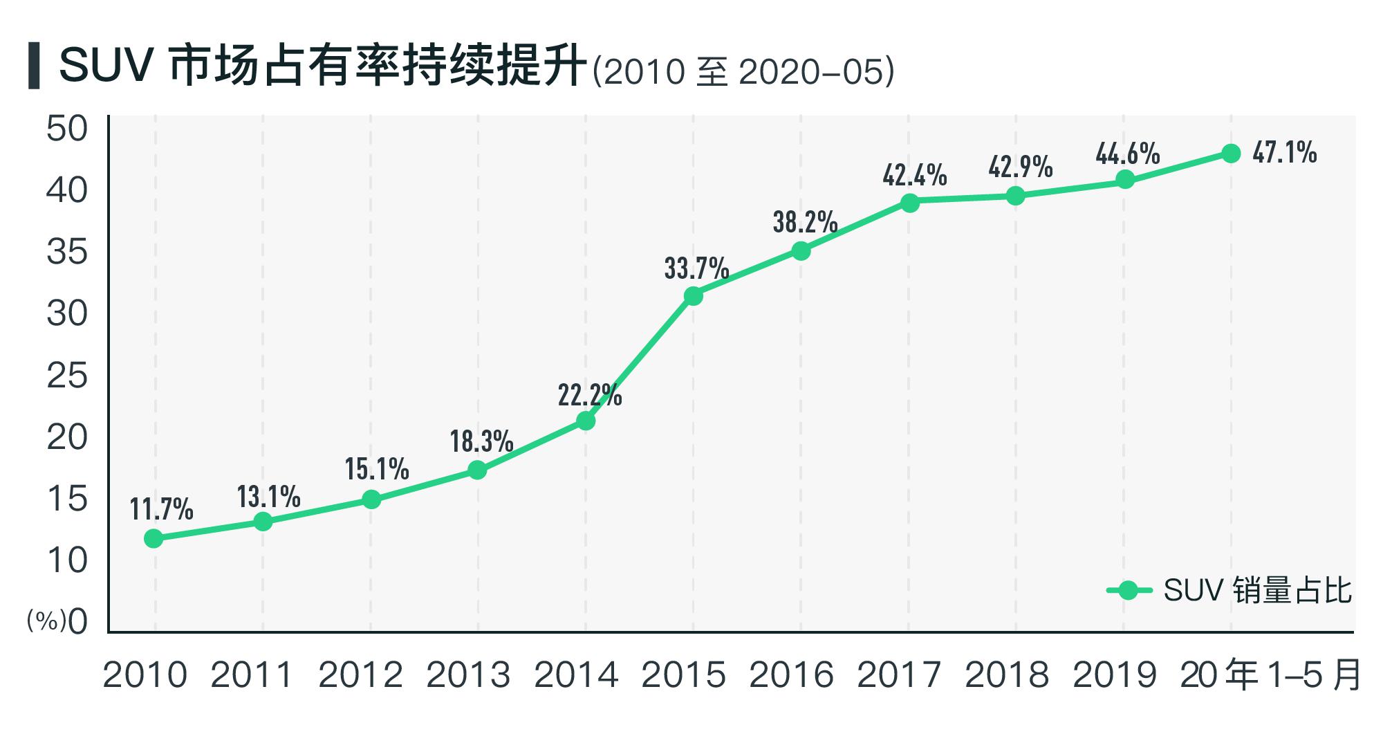 從狹義乘用車細分市場來看,SUV車型的銷量恢復速度最快,且優勢在不斷擴大中,SUV銷量占乘用車總銷量比例仍在持續提升。