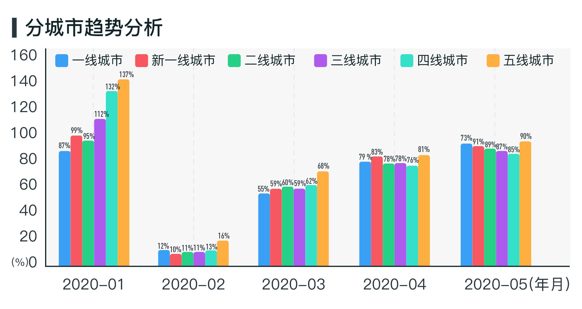 后疫情時代早日到來,是全世界人民所期待的美好愿景,我們從已經開始復蘇的中國車市數據中已經看到:五線城市銷量恢復速度分外搶眼。今年3月恢復最快達到68%,五線城市汽車銷量恢復速度明顯高于其他級別城市,而新一線城市的銷量呈整體恢復的趨勢。