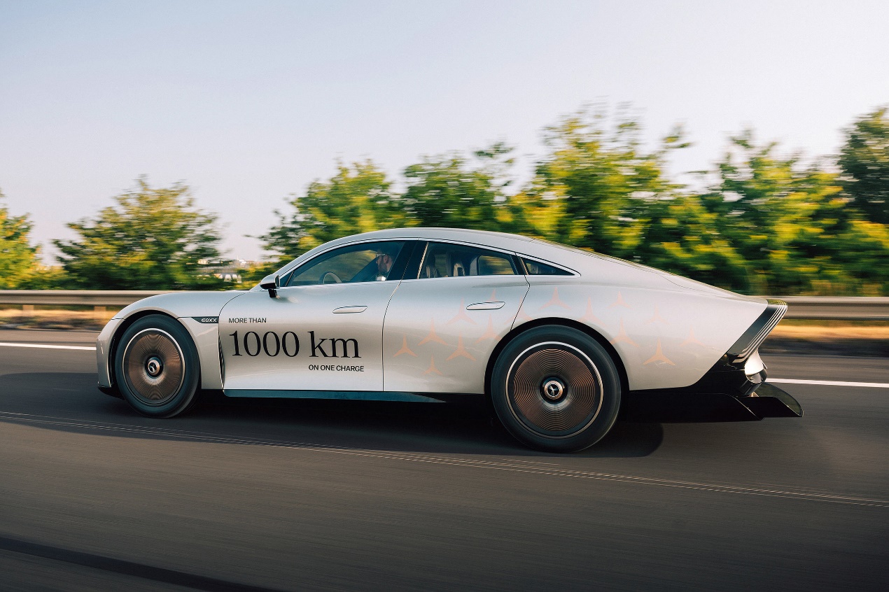 先進(jìn)三電打造能效紀(jì)錄:VISION EQXX概念車擁有自主研發(fā)的全新電驅(qū)系統(tǒng),由梅賽德斯-奔馳F1團(tuán)隊(duì)共同開發(fā)的全新900伏高壓電池組,借由先進(jìn)的陽極化學(xué)工藝,以495千克的超低重量實(shí)現(xiàn)接近400瓦時(shí)/升的能量密度,強(qiáng)大的電驅(qū)系統(tǒng)更能夠?qū)?5%的電池能量直接傳遞給車輪。同時(shí),車頂117個(gè)太陽能電池可以為長途旅行儲(chǔ)備相當(dāng)于25公里的電量。VISION EQXX概念車還配備“能效助手系統(tǒng)”,可以根據(jù)能量流、地形、電量,甚至是風(fēng)和太陽的方向及強(qiáng)度等信息,給出高效的出行駕駛建議,并提高駕駛效率。得益于上述高能效科技,VISION EQXX概念車在今年6月的真實(shí)路況挑戰(zhàn)中,以百公里8.3千瓦時(shí)的超低電耗,實(shí)現(xiàn)了一次充電行駛1202公里的表現(xiàn)。