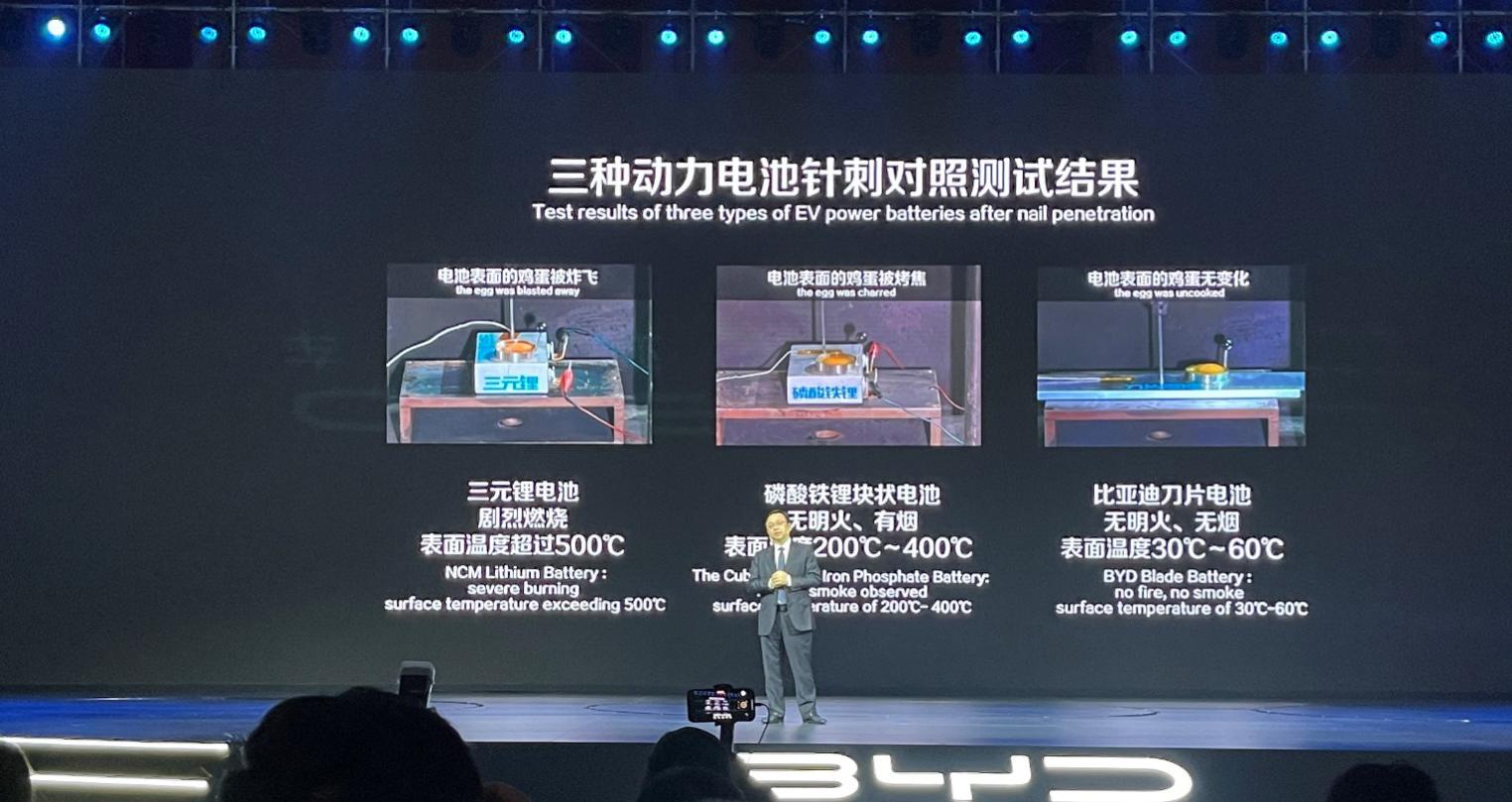 比亞迪刀片電池采用高安全性磷酸鐵鋰(LFP)技術(shù),刀片電池成功通過了行業(yè)內(nèi)公認(rèn)的對電池電芯安全性嚴(yán)苛的檢測手段之一“針刺穿透測試”,重新定義了電動(dòng)汽車的安全標(biāo)準(zhǔn),助推全球動(dòng)力電池安全標(biāo)準(zhǔn)邁上新臺(tái)階。