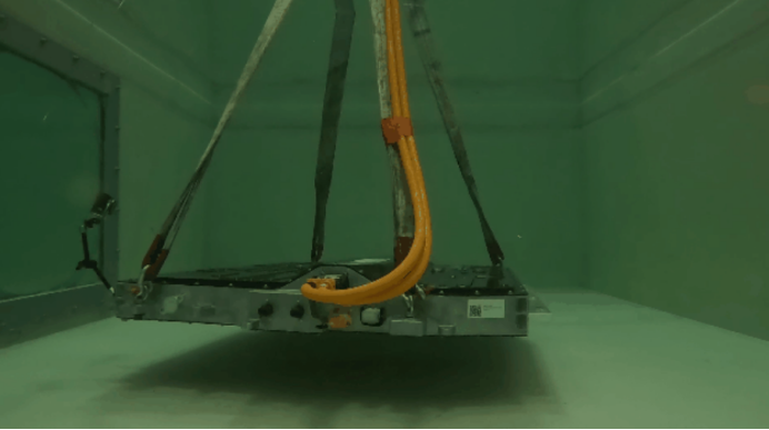 在電池包海水腐蝕浸泡試驗中,將神盾電池電池包浸入到深度1米、濃度為3.5%的氯化鈉溶液中,連續(xù)浸泡24小時,取出靜置觀察2小時,未發(fā)生泄漏、起火、爆炸等現(xiàn)象,超過浸泡0.5小時的國標要求。