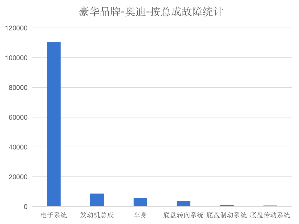 通過對數據詳細分析,奧迪品牌A6車型千車故障率為11.96、Q5車型千車故障率為9.65、A4車型千車故障率為11.5。