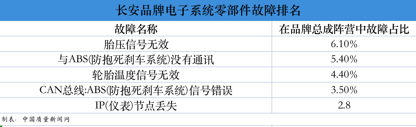此外,在長安汽車電子系統故障表現中,排名前五的故障中有關ABS或制動系統的故障占比較高,對于購買或使用長安汽車的用戶需定期檢查,排除安全隱患。