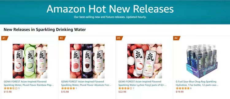 元氣森林同時包攬亞馬遜氣泡水新品前三