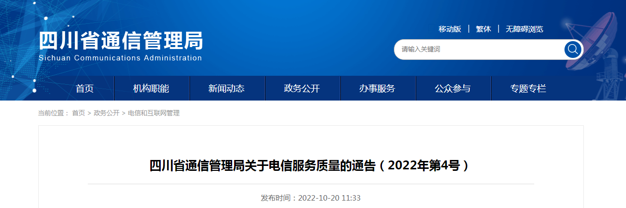 四川省通信管理局關于電信服務質量的通告(2022年第4號)