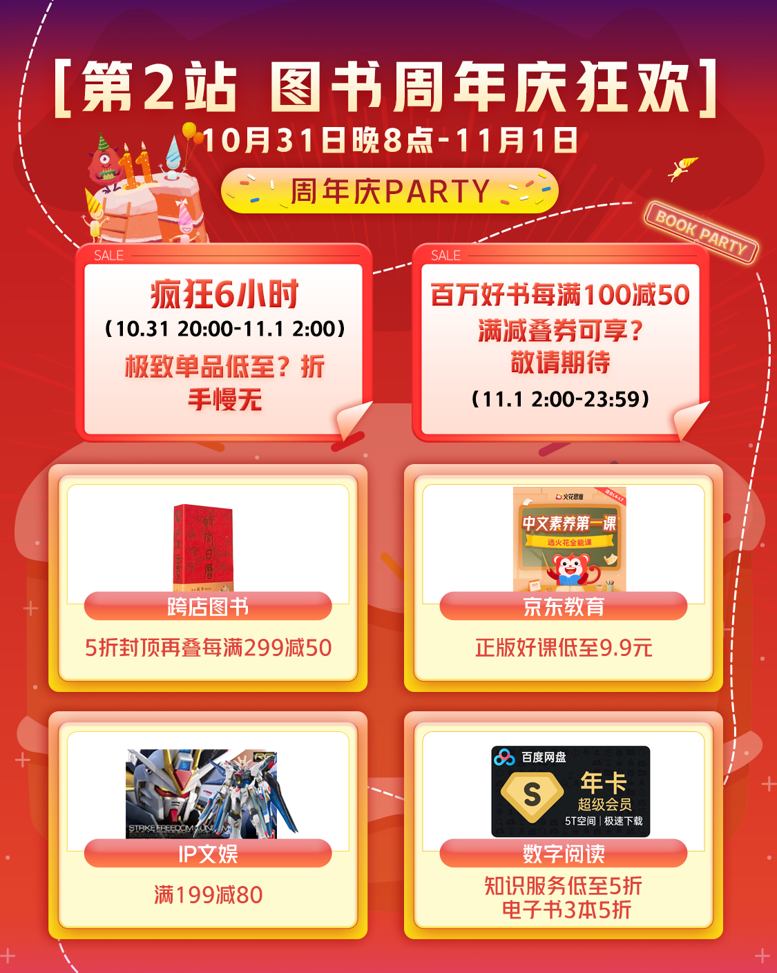 今年是京東圖書成立12周年,在周年慶暨京東圖書11.11開門紅期間,京東自營的百萬優質好書每滿100減50,還享疊券優惠;跨店圖書5折封頂,部分再疊每滿299減50京東平臺滿減;31號晚8點開門紅“瘋狂6小時”活動的單品,將有1000+好書空前低價搶購,讓讀者朋友買到爽。此外,低至9.9元的京東教育正版好課,滿199減80的IP文娛產品,低至5折的知識服務和購3本享5折的電子書,讓不同興趣愛好的讀者有了更輕松的入手機會。