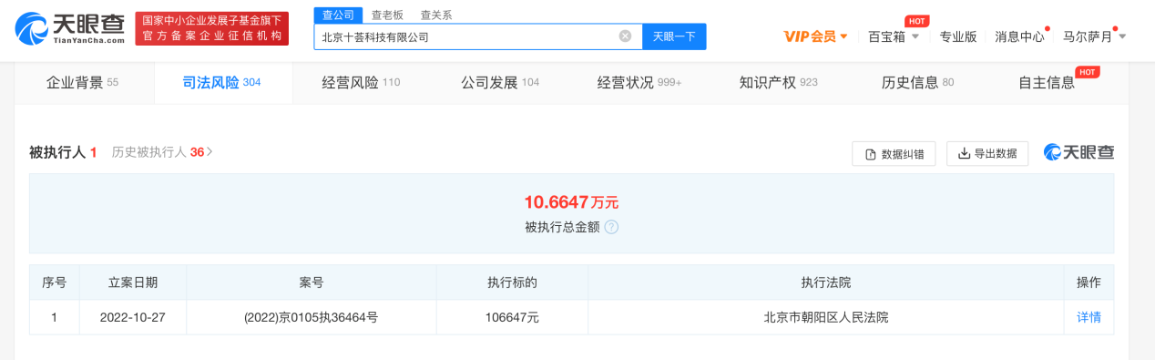 中國質量新聞網訊(閆冬)近日,十薈團關聯公司北京十薈科技有限公司新增一則被執行人信息,執行標的106647元,執行法院為北京市朝陽區人民法院。