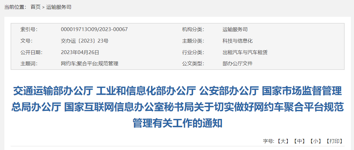 關(guān)于切實(shí)做好網(wǎng)約車聚合平臺(tái)規(guī)范管理有關(guān)工作的通知