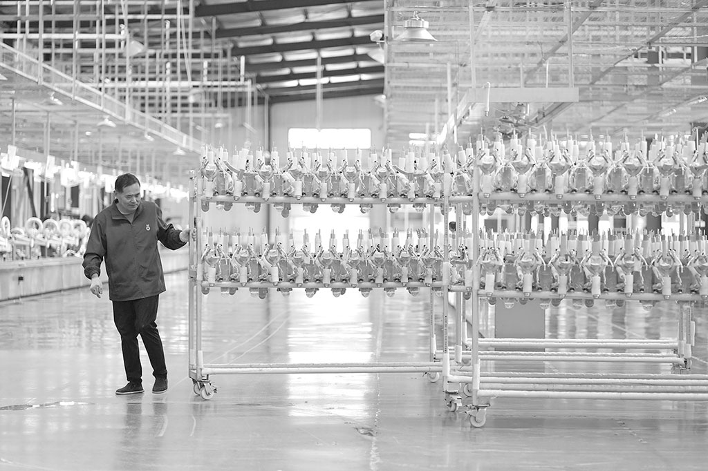 圖為10月16日,平鄉縣一家童車生產企業的工人在運輸童車車架。牟 宇 攝