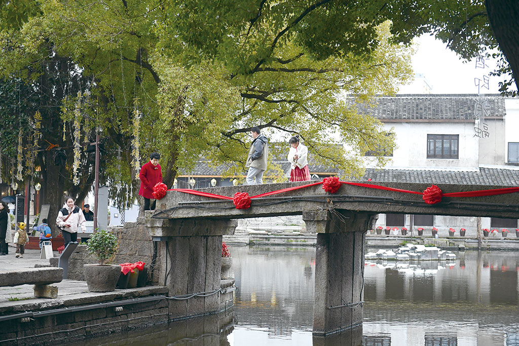 游客在紹興市越城區黃酒小鎮參觀游覽。
