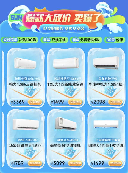 而在此次“空調(diào)放價爽一夏”活動期間,京東家電家居更是攜手美的、格力、華凌、海爾、奧克斯、TCL、小米等空調(diào)品牌,甄選眾多爆款空調(diào)型號,以不搞套路、價格直降到產(chǎn)品的“裸價”模式呈現(xiàn)到消費者面前,讓消費者用更低價格購買空調(diào),讓清涼觸手可及。