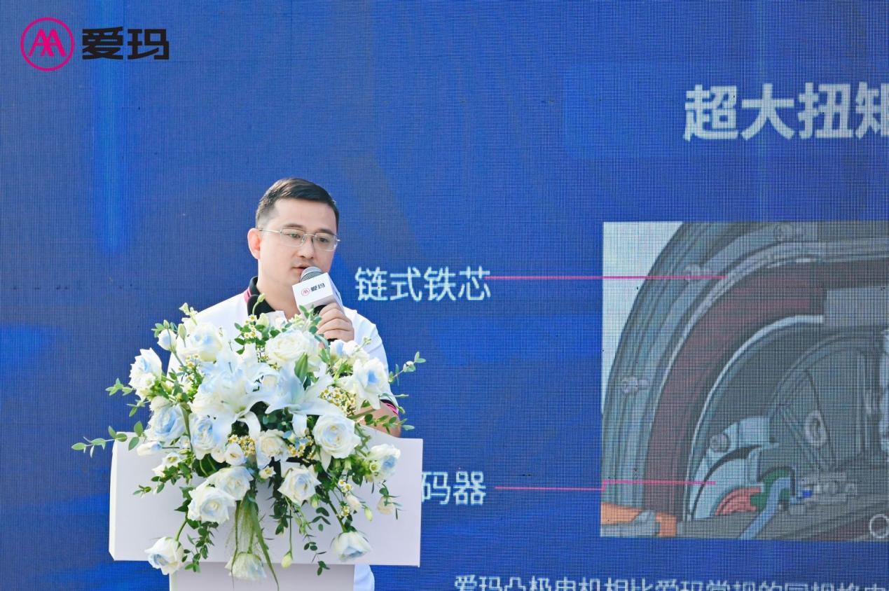 活動(dòng)現(xiàn)場(chǎng),愛瑪科技集團(tuán)股份有限公司能源動(dòng)力事業(yè)部愛瑪機(jī)電研發(fā)管理部總監(jiān)沈哲介紹了電機(jī)技術(shù)新的突破性成果,并分享不同電機(jī)的硬核特性。其中,愛瑪自研升級(jí)凸極電機(jī),實(shí)現(xiàn)既要強(qiáng)動(dòng)力又要高效率還要可靠性。此外,愛瑪凸極產(chǎn)品矩陣持續(xù)不斷創(chuàng)新完善,以滿足用戶多元個(gè)性需求。值得一提的是,憑借其運(yùn)行穩(wěn)定性和高負(fù)載下的抗壓能力,愛瑪凸極電機(jī)榮獲中國(guó)電研CVC威凱頒發(fā)的“電動(dòng)車摩托車用無刷直流電機(jī)認(rèn)證證書”。