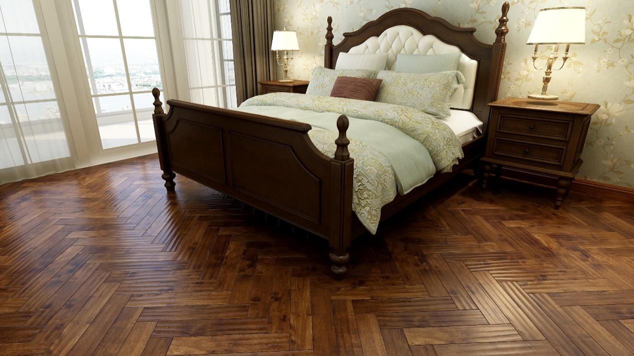 純實木地板便是這種風格的搭檔。用久盛純實木地暖地板裝扮家居空間,胡桃色搭配南洋復古風,厚重、典雅的色澤營造一種電影感氛圍。