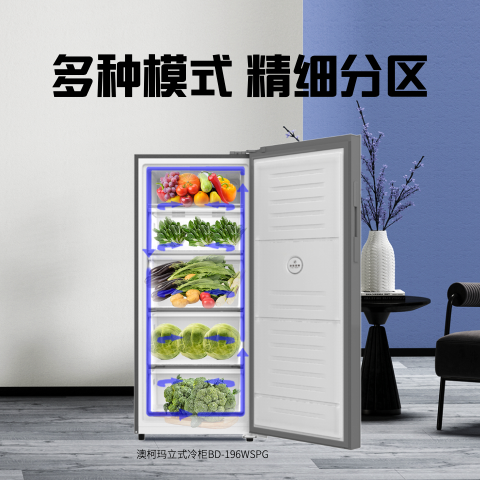 限于家中面積,臥式冷柜常常難以走進普通的中小戶型家庭。小巧不占地的澳柯瑪立式冷柜BD-196WSPG解決了這個小戶型家庭的痛點,同樣支持冷藏模式和0.1℃精確控溫的它采用獨特的立式設計,在保持大儲存容量的同時減少了占地面積,像小冰箱一樣精巧,讓儲存空間更加靈活。冷柜內設置的五個分區便于不同食材的分類,水果和蔬菜也可以分門別類地放置,一目了然,便于拿取。