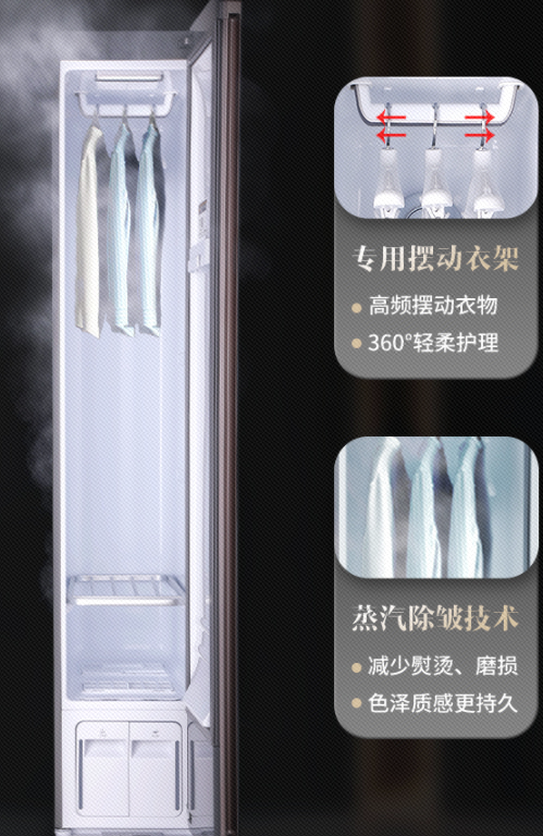 產品還具備除塵凈衣凈味的功能,它擁有馥郁香松和清芬白茶兩款香薰可選,能夠適配不同的人群和場合,蒸汽循環式置香留香持久,帶著淡淡香氣的衣服除了讓自己感到心情舒暢,也會給周圍的人留下精致優雅的印象。次日出門前取出來氣味怡人、干爽挺括,是家庭衣物護理好幫手。