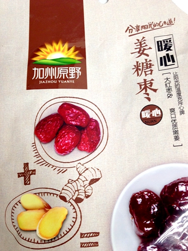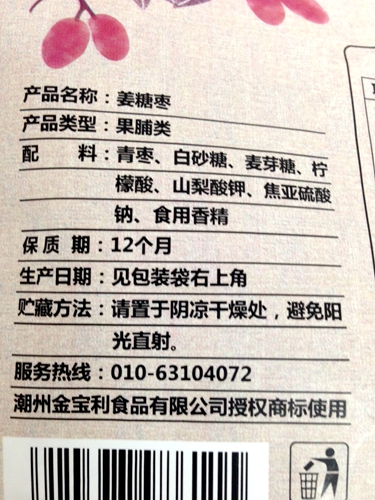 事實(shí)上,按照“加州原野”產(chǎn)品的配料標(biāo)注,這種“姜糖棗”用姜味香精作為添加劑,不能稱“姜糖棗”,而頂多叫“姜味糖棗”。