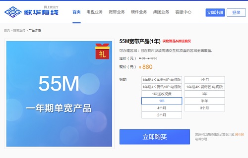 對于馮女士反映的情況,本網工作人員登錄北京歌華有線官網(http://www.gehua.net/ywjs/zxzf/),在“寬帶業務”欄沒有看到馮女士購買的20M包年(12個月)880元的套餐產品。現在能找到的標價880元的包年產品,是“55M”(12個月)。本網工作人員在這款產品的說明中沒有看到“買半年送半年”的提示。值得提示的是,在歌華有線“歌華寬帶業務介紹”項目下的“最新資費”欄目表中,對于費用的贈送內容,這個表格中顯示的贈送額度都是以“年”為單位,如“55M(36個月)總費用為:1760元”,這個產品的贈送標準為“買兩年送一年”。