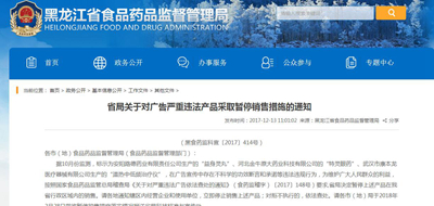 中國質量新聞網訊? 12月13日,黑龍江省食藥監局官網發布通知稱,據10月份監測,標示為安陽路德藥業有限責任公司生產的“益身靈丸”、河北金牛原大藥業科技有限公司的“特靈眼藥”、武漢市康本龍醫療器械有限公司生產的“溫熱中低頻治療儀”,在廣告宣傳中存在不科學的功效斷言和承諾等違法違規行為,為維護廣大人民群眾的利益,按照國家食品藥品監管總局稽查局《關于對嚴重違法廣告依法查處的通知》(食藥監稽字)〔2017〕148號)要求,省局決定暫停上述產品在黑龍江省行政區域內的銷售。