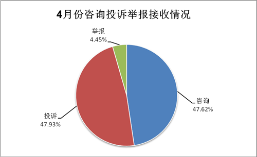 4月份咨詢投訴舉報日接收數量總體較平穩,詳見下圖: