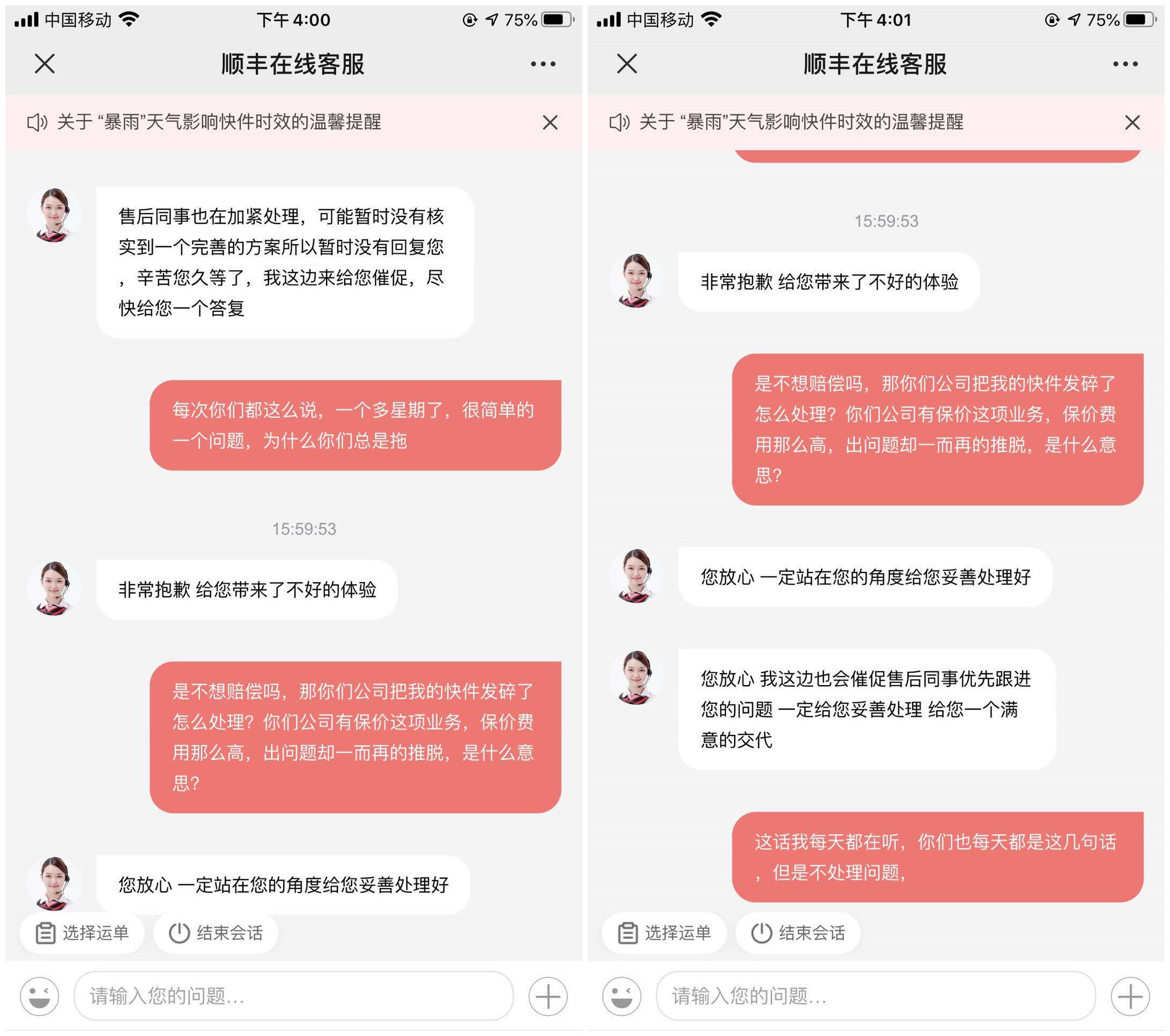 “我的訴求是賠償我一個(gè)同等款式和價(jià)值的壺,或者按照保價(jià)金額賠付我4200元。但順豐的賠付客服稱只能賠我1000元,我不能接受,于是找了投訴客服。可是幾天后,這事又被推回到了理賠客服那里。”崔先生給中國質(zhì)量新聞網(wǎng)發(fā)送了相關(guān)音頻,其中理賠客服在與崔先生溝通中翻來覆去就是幾句話——“先生,瓷器是易碎物品”、“先生,您提的要求我們達(dá)不到”、“先生,您提出的金額,我們申請(qǐng)不下來”……而想解決問題的唯一辦法就是“先生,請(qǐng)您降低賠償金額”。