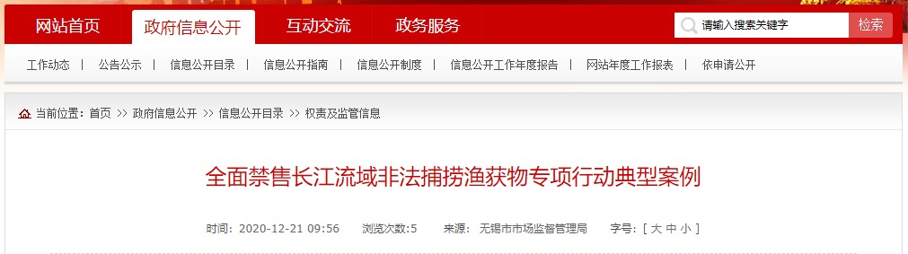 江蘇省無錫市市場監(jiān)管局公布全面禁售長江流域非法捕撈漁獲物專項行動典型案例