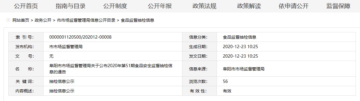 中國質量新聞網訊 (記者陳娟女) 近日,安徽省阜陽市市場監督管理局公布2020年第51期食品安全監督抽檢信息。信息顯示,阜陽市市場監督管理局近期抽檢肉制品59批次,全部合格。