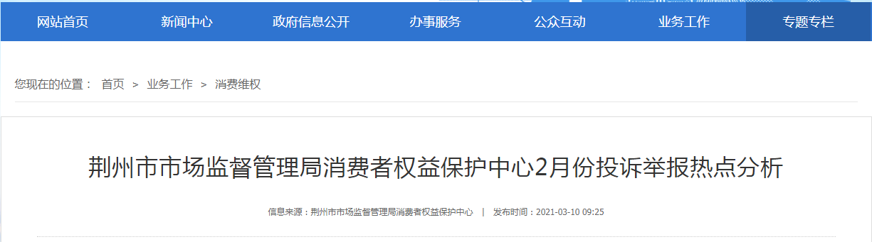 中國質量新聞網訊 近日,湖北省荊州市市場監督管理局消費者權益保護中心發布2月份投訴舉報熱點分析。2021年2月份, 12315系統共處理消費者訴求(含咨詢、投訴、舉報等,下同)2490件,其中消費者咨詢1711件,占訴求總量的68.71%,咨詢答復率為100%;投訴573件,占訴求總量的23.01%,已辦結258件,辦結率為45.03%;舉報206件,占訴求總量的8.3%,已辦結92件,辦結率為44.66%。(見圖一)