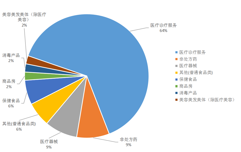 涉嫌違法量排名前五的廣告類別 | 醫療美容服務 | 615 | 27.00% |