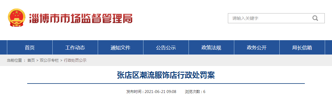 中國質(zhì)量新聞網(wǎng)訊 6月21日,山東省淄博市市場監(jiān)管局網(wǎng)站發(fā)布行政處罰信息,涉及張店區(qū)潮流服飾店銷售侵犯滿景(IP)有限公司注冊商標(biāo)專用權(quán)的服飾案。