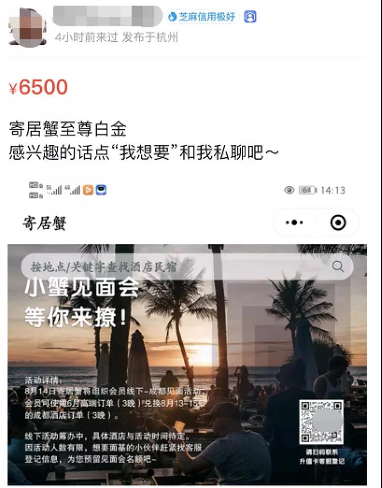 中國質量新聞網訊 6500元買一張“白金卡”,全年不限次數預定酒店、民宿;78元購買一張“新人卡”,即可享受高端酒店住宿一晚……旅行平臺“寄居蟹”的的價格誘人,但下單前的押金卻往往是房費的數倍。就在上個月,有用戶發現,該平臺小程序打不開了,有人甚至損失高達幾十萬元。