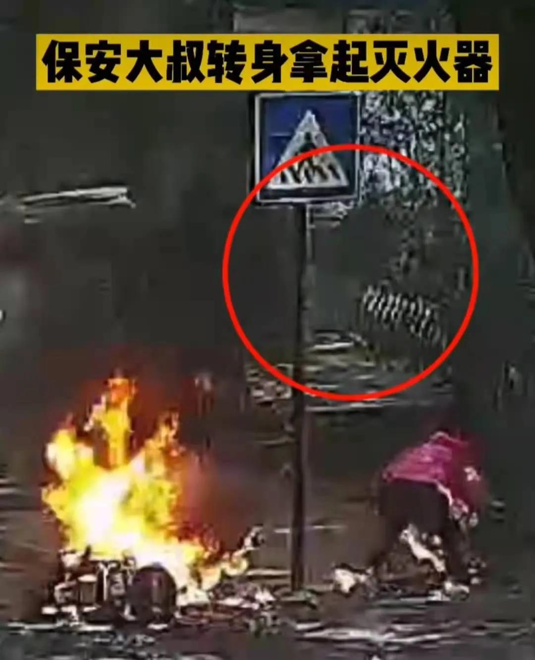 “當時我就聽見一聲巨響,然后就看見了火光。”現場的保安師傅莊永之是目擊者之一。據了解,當時他聽到響聲后趕緊往路邊去看,結果就看到一輛電瓶車倒在路邊,火苗已經躥得老高了。